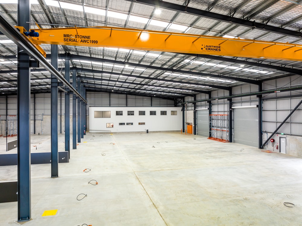 Constructed within the FKG Group’s AATLIS Precinct, the completed workshop features a 5T gantry crane, staff amenities and services design to suit the operational requirements of the client, and a showroom building that houses two mock up homes to display the client’s products.